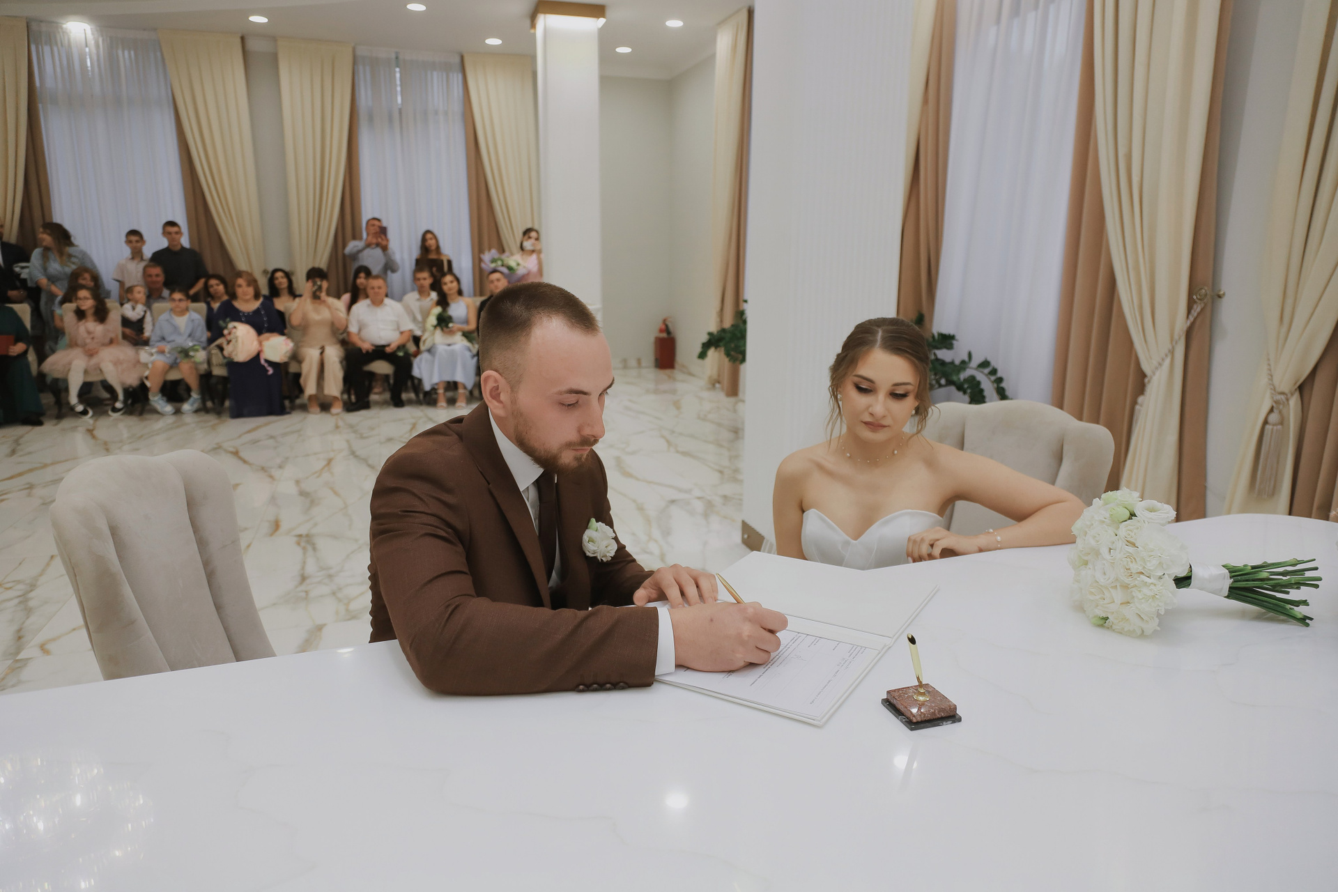 Полный свадебный день, 12 часов съёмки: сборы, ЗАГС, прогулка, ресторан.